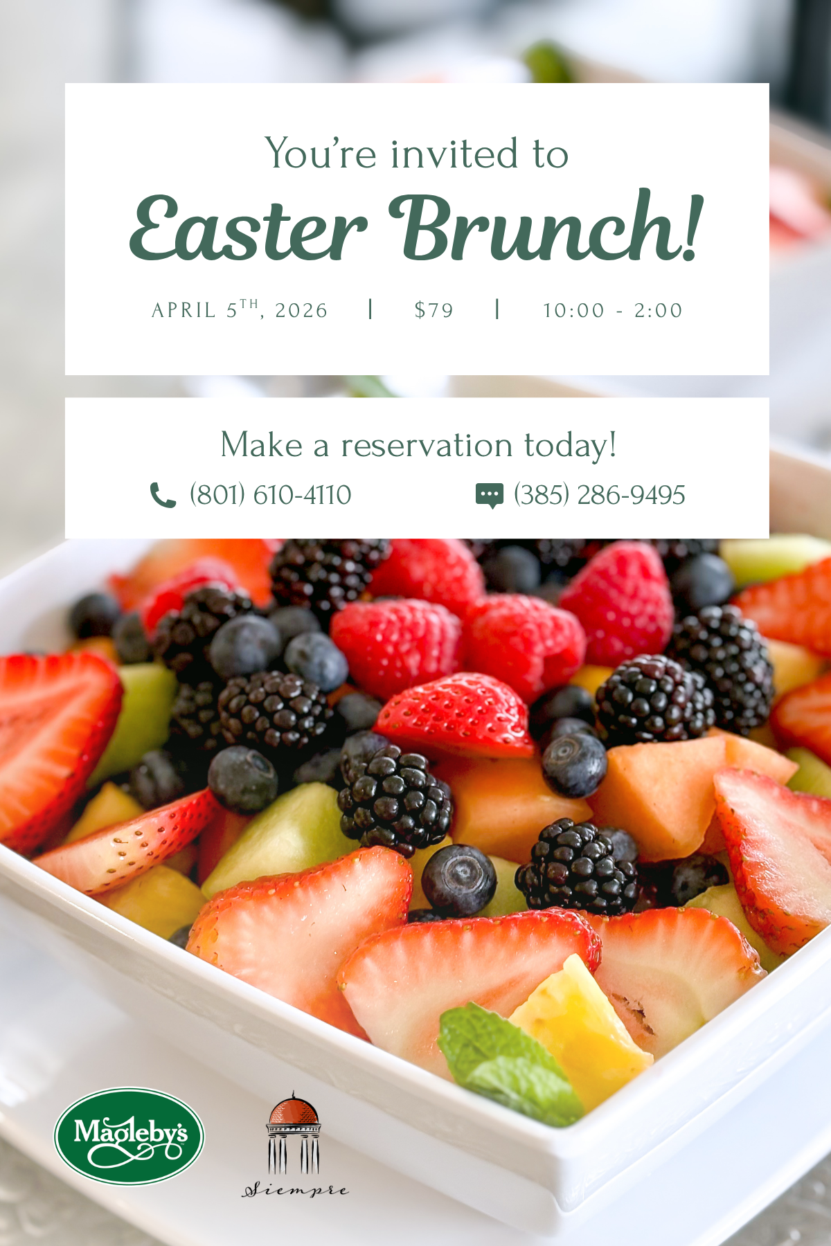 Magleby’s offers lunch buffets every Wednesday and a Prime Rib & Seafood Buffet on the last Friday of each month. Guests can enjoy a variety of our 40-year favorites, including fresh seasonal salads, hearty sides, pasta, chicken, and carving stations. We also host specialty buffets for Thanksgiving, Valentine’s Day, Mother’s Day, and Father’s Day—perfect for celebrating life’s special moments with delicious food.